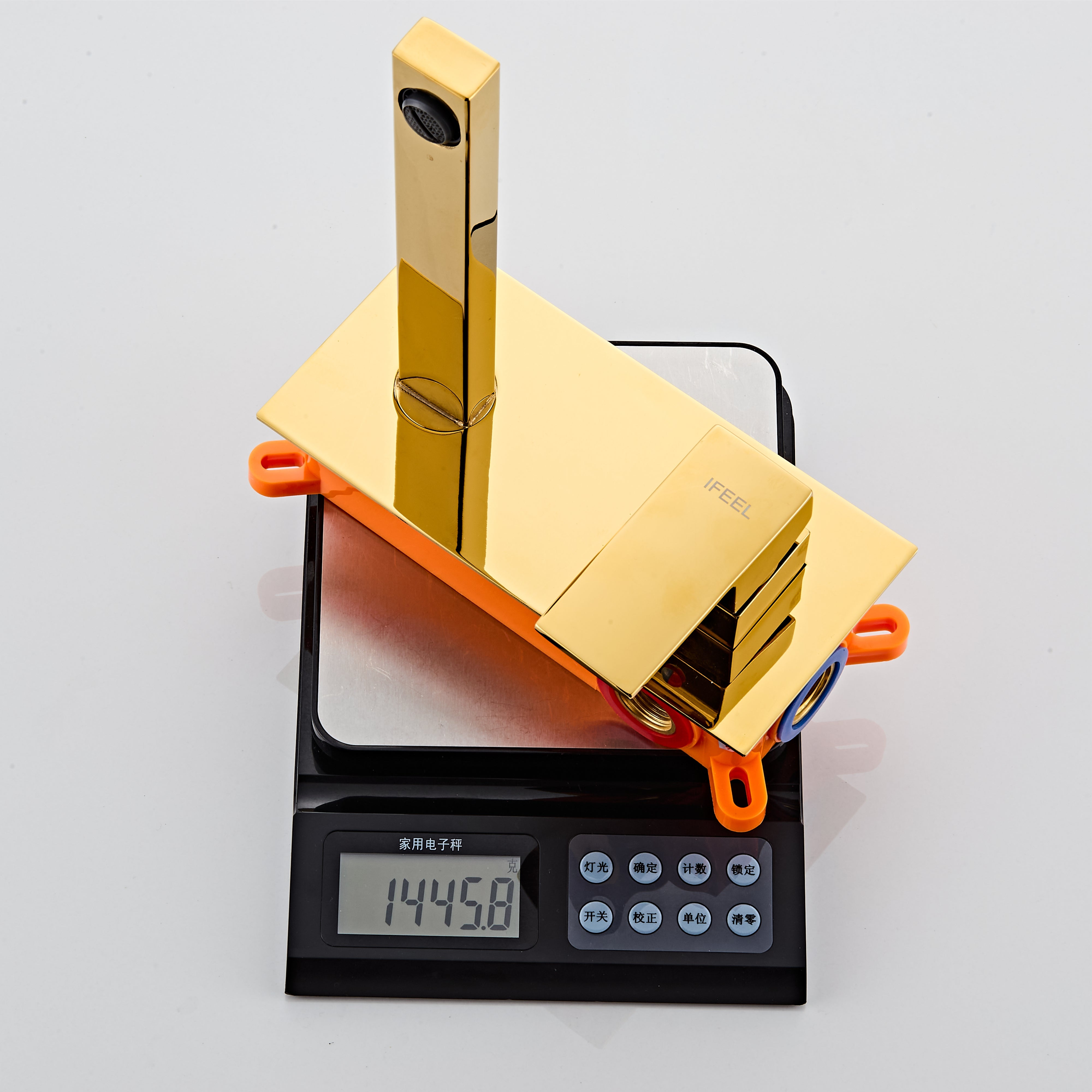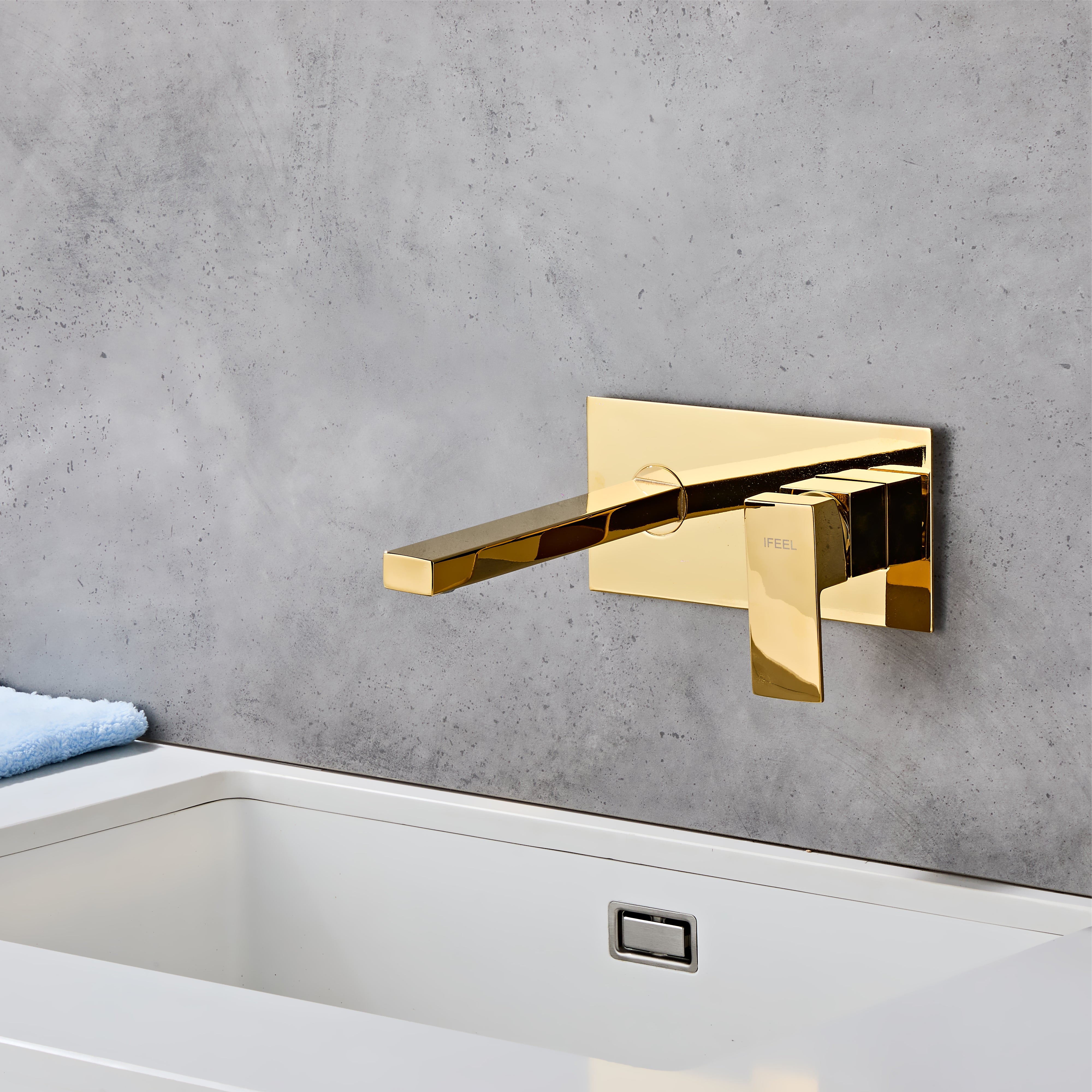 The IFEEL basin faucet is elegant, modern, and stylish, making it an ideal choice for your bathroom. Its wall-mounted design conceals all plumbing and wiring. A single square handle controls water pressure and temperature. The square spout provides ample water flow, keeping your bathroom clean and dry. An integrated brass mechanism facilitates easy installation. Available in gold, chrome, and black.