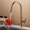 Surface: This pull-out sink faucet is available in gold, black, and chrome.