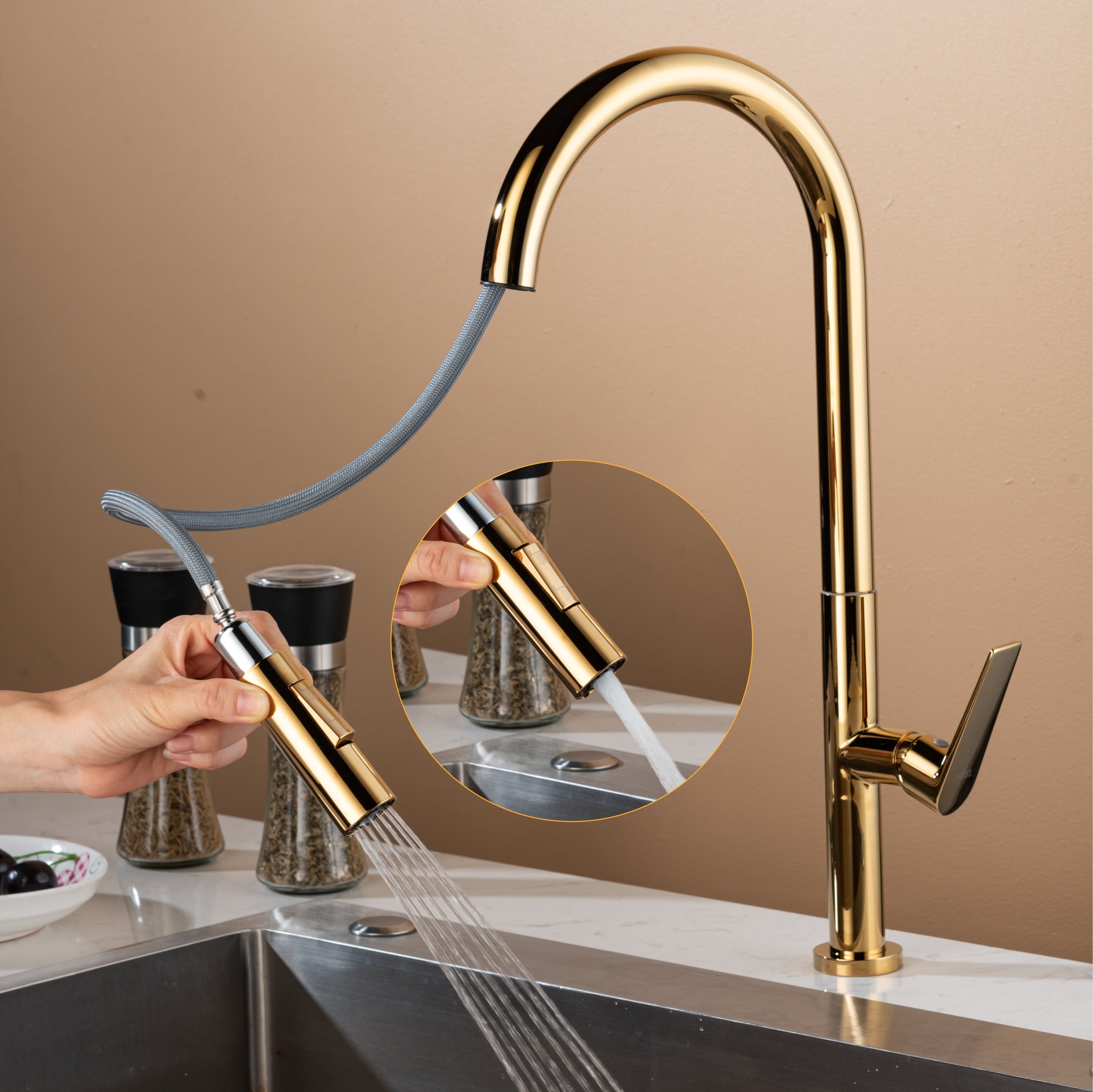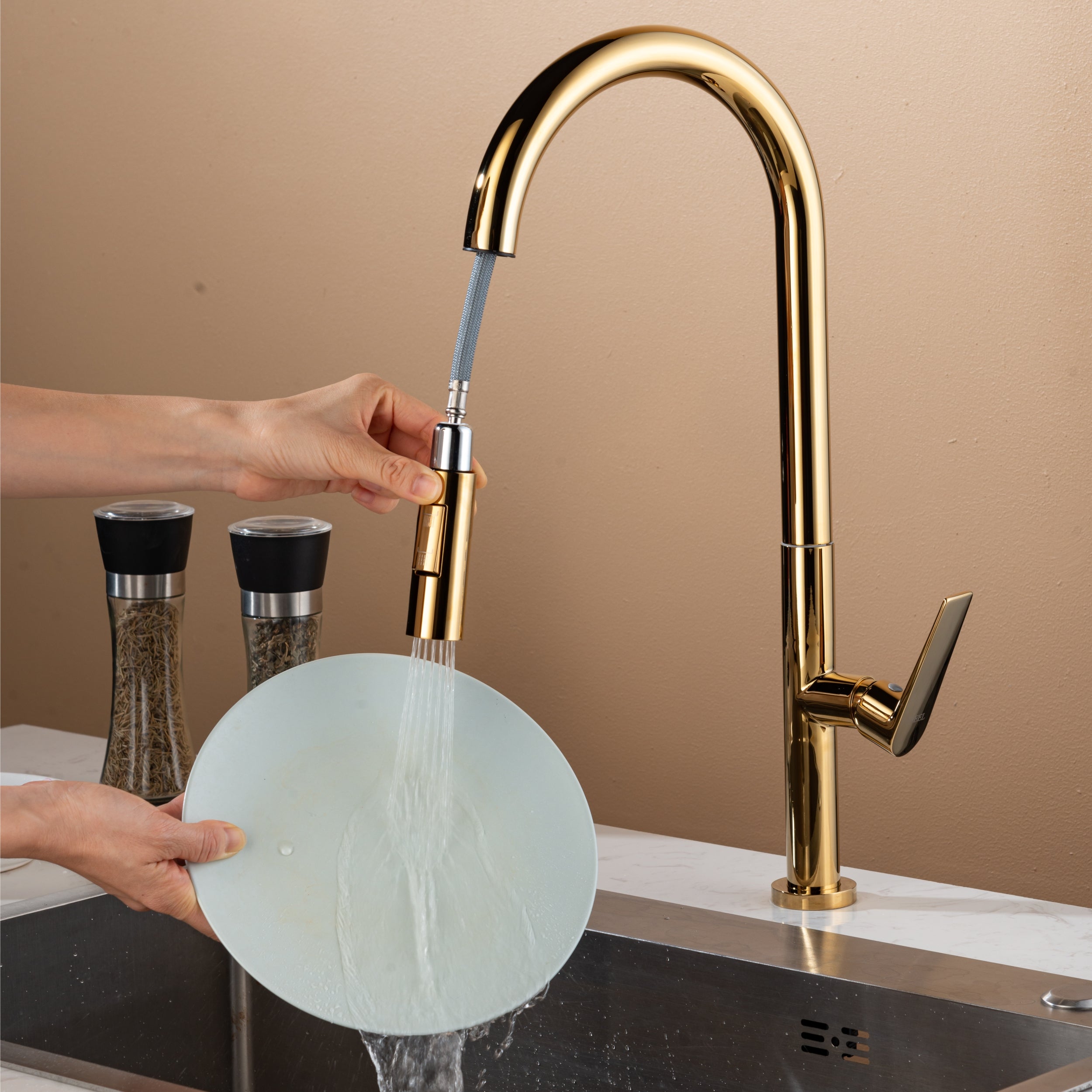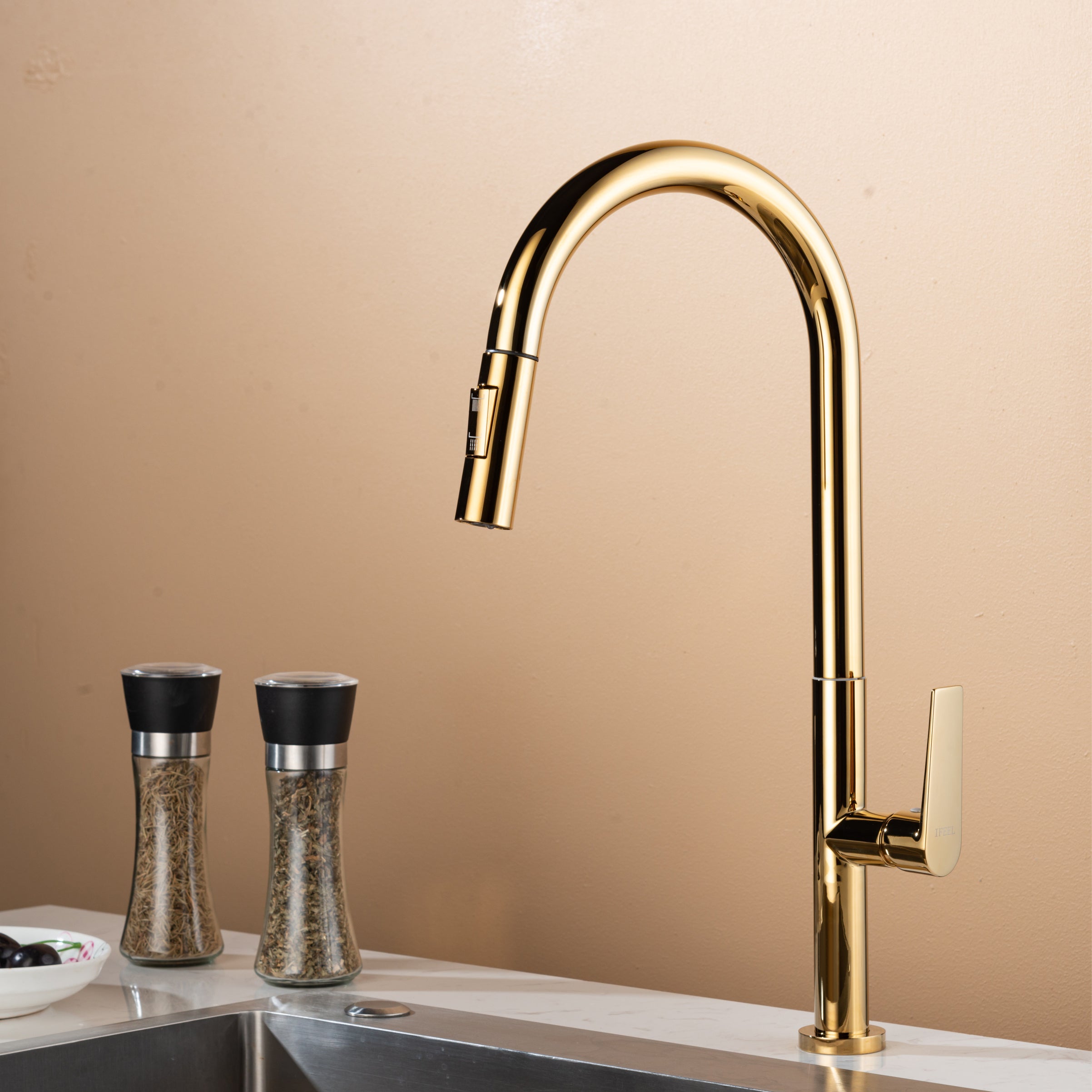 This elegant and minimalist pull-out sink faucet from IFEEL combines practicality with sophisticated design. Perfect for busy kitchens, its pull-out design makes cleaning and rinsing easier and more convenient, while...