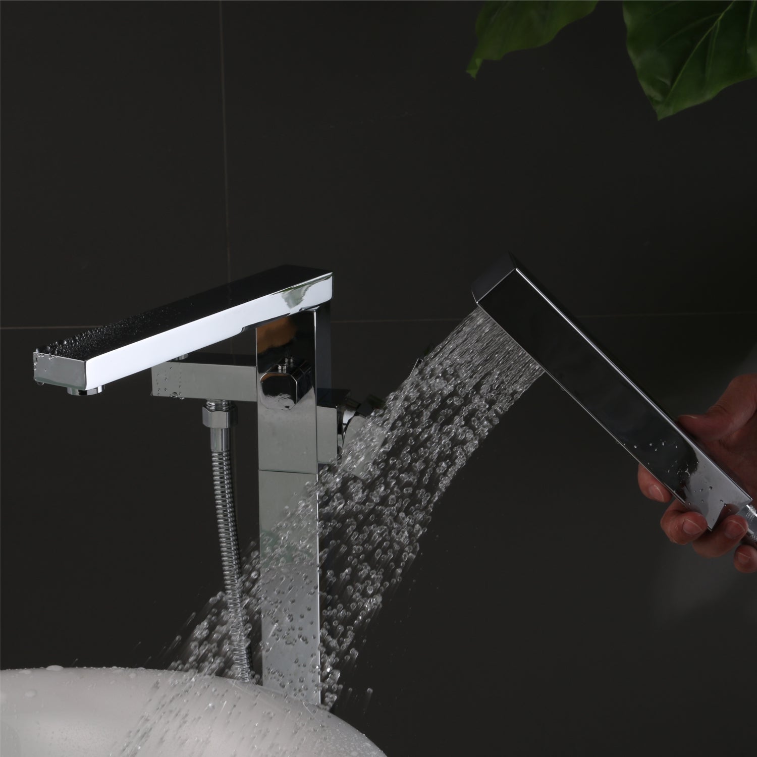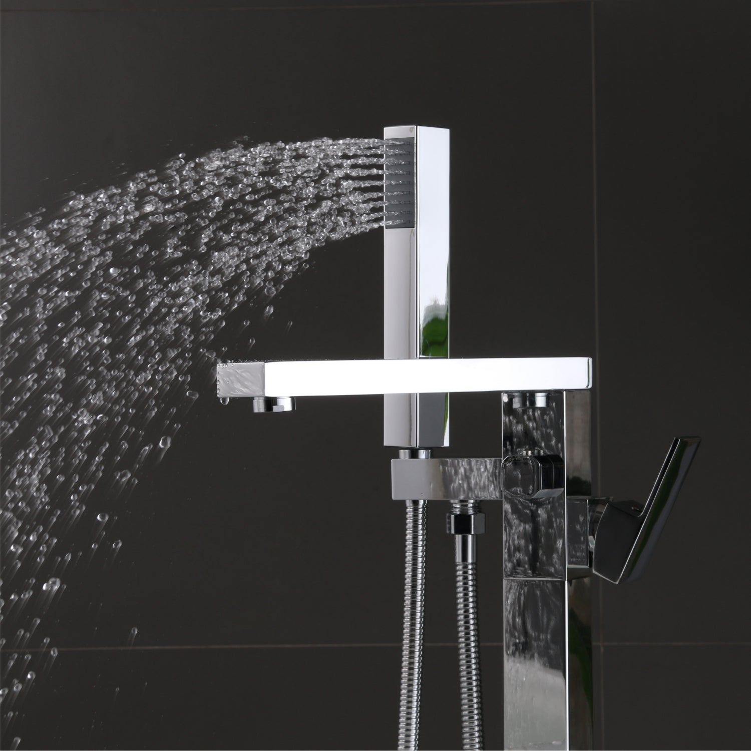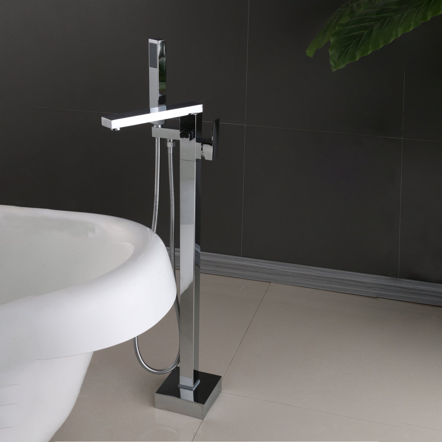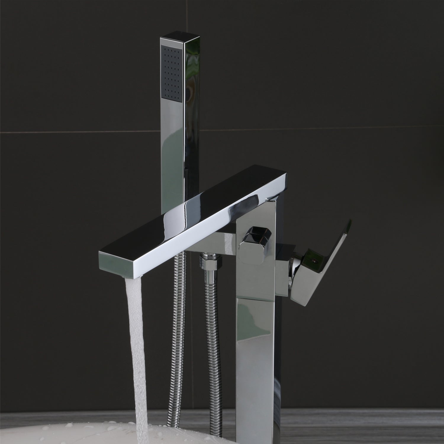 The Square Freestanding Bath Faucet's bold square design is eye-catching. It doesn't need to be fixed to the wall, giving you more flexibility when setting up your bathroom. The tall spout provides ample space for filling your tub, while the easy-to-use lever allows you to control water flow and temperature with just a touch.
